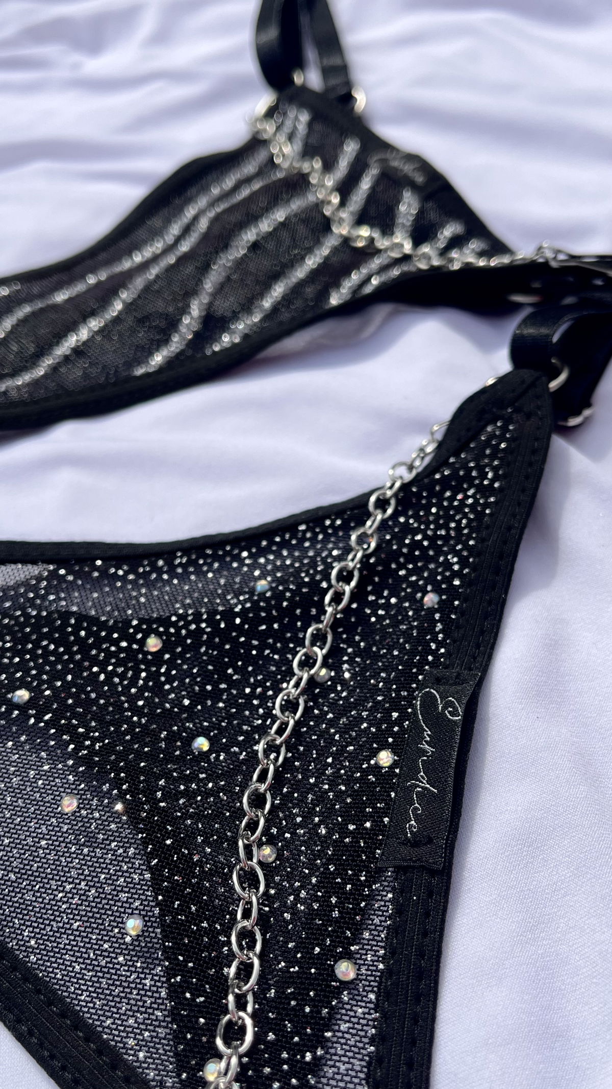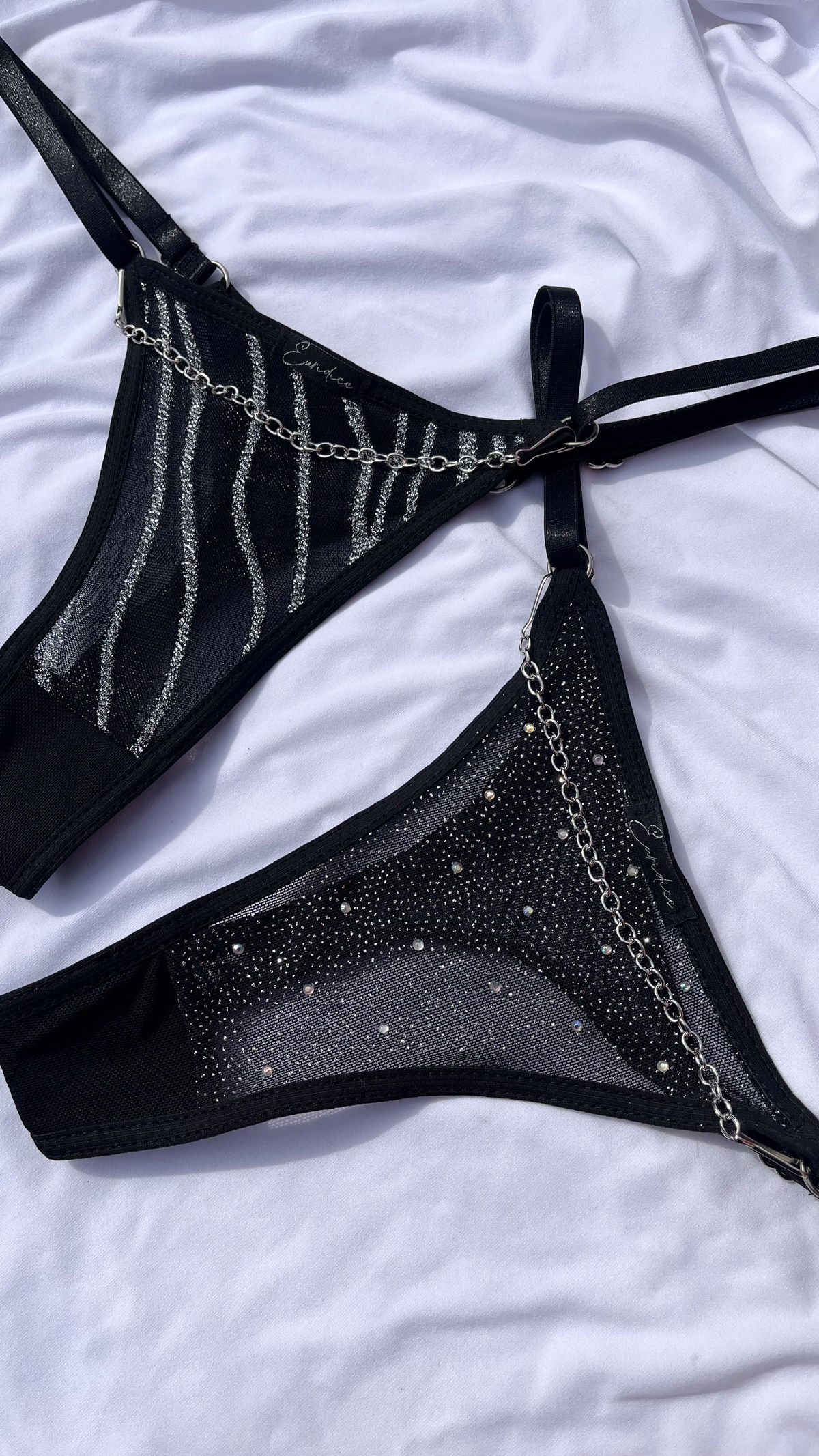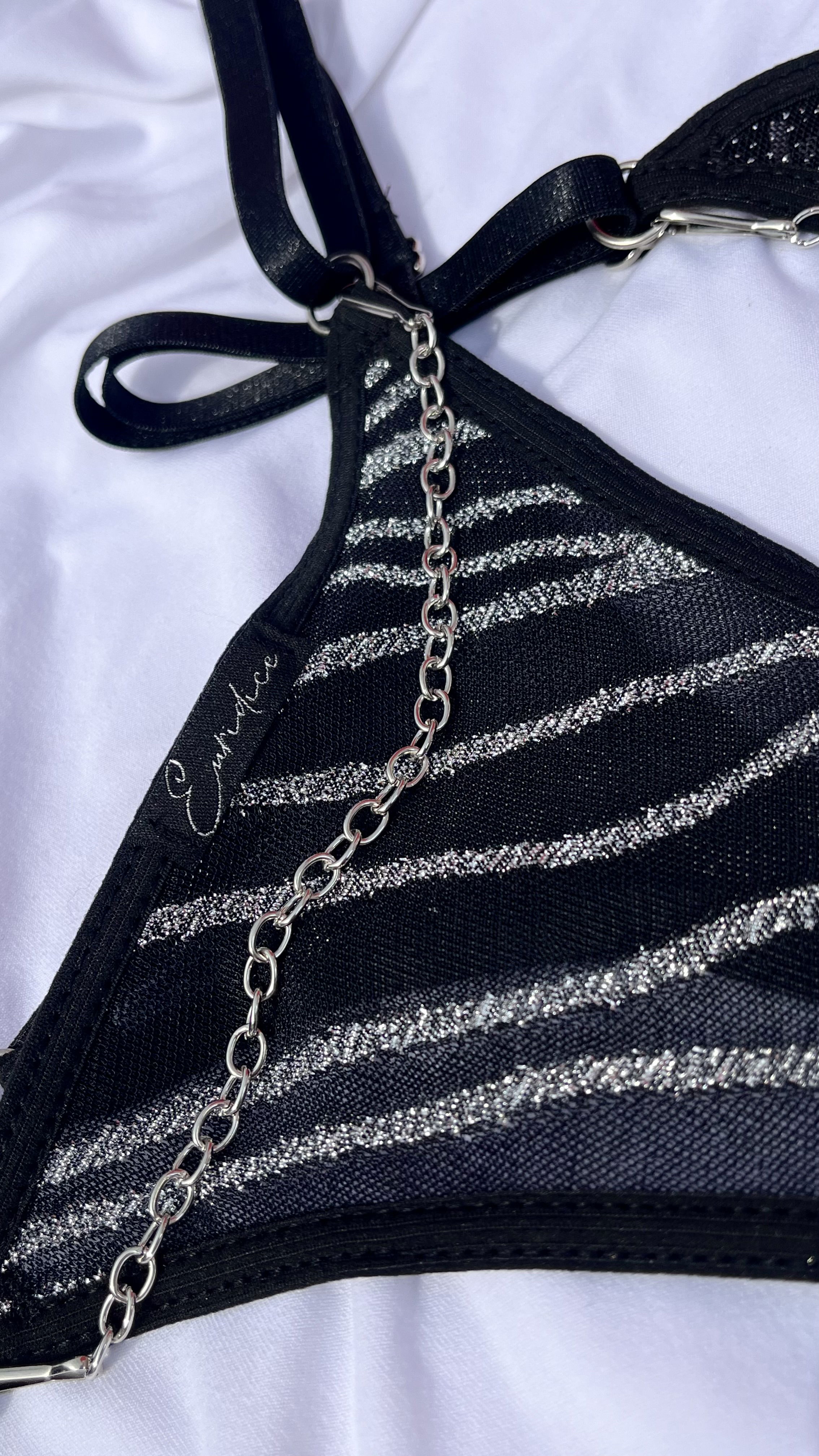 Less regulable de Microtul con brillos en dos diseños. Con cadenas desmontables